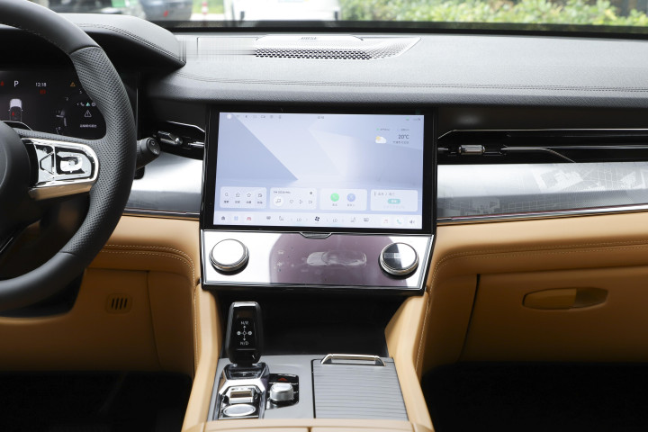 坐进领克09的车内,直观感受是它在用料和细节上做得相当扎实。中控采用环抱式布局,目光所及和指尖触碰的区域大多覆盖了触感柔软的真皮材质,缝线处理得也十分工整,整体给人一种细腻且高级的视觉与触觉印象。中控屏幕的配置根据不同动力版本有所区别:燃油版搭载的是一块12英寸中央主屏和下方6英寸功能控制屏的组合,空调、驾驶模式等常用功能均可通过实体感更强的小屏直接操作,无需进入多级菜单,日常使用更为便捷。而新款插混版本则升级为15.4英寸悬浮式中控屏,显示面积更大,系统响应也更流畅,不过悬浮式设计在部分驾驶视角下或许会稍显突兀,需要一些时间适应。12.3英寸全液晶仪表支持多种主题切换,显示效果清晰直观。导航、驾驶辅助、车速等关键信息的排布都很合理,读取起来轻松不费力。